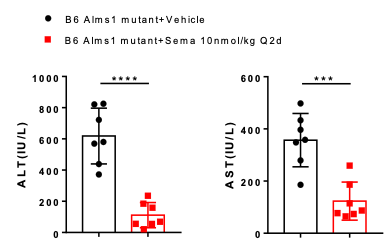 ͼ11. Semaglutide¿ÉÏÔÖø¸ÄÉÆB6-Alms1Í»±äСÊó¸Îøˮƽ¡£Êý¾ÝÒÔMean¡ÀSDչʾ¡£Ê¹ÓÃunpaired two-tailed Student's t-test·½·¨½øÐÐͳ¼ÆÑ§·ÖÎö¡£***£¬p<0.001£»****£¬p<0.0001¡£