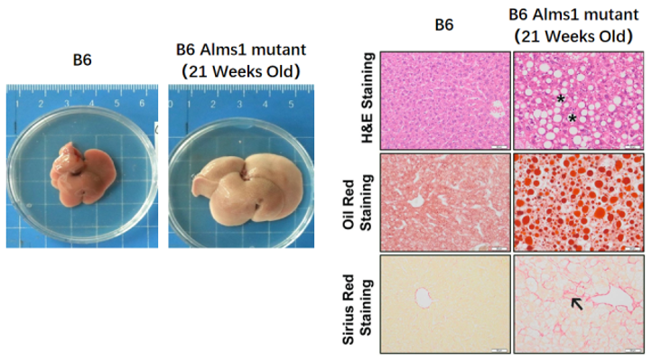 ͼ6. C57BL/6-Alms1-delСÊóÔÚ21ÖÜʱ¹Û²ìµ½ÑÏÖØµÄÖ¬·¾¸Î±íÐÍ£¬°üÀ¨Ö¬·¾±äÐÔ¡¢Ñ×Ö¢¡¢Ö¬ÖʳÁ»ýºÍÏËά»¯¡£